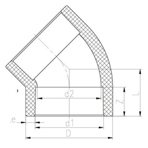 Coude 45° à douille thermofusible PPH