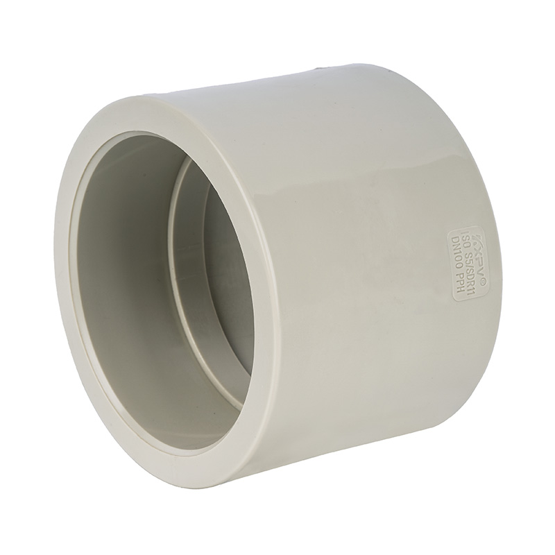 Raccords de bouchon de tuyau en plastique industriel personnalisés de 4 pouces, jaune terreux PPH directement DN15-100 pour l'approvisionnement en produits chimiques et en eau