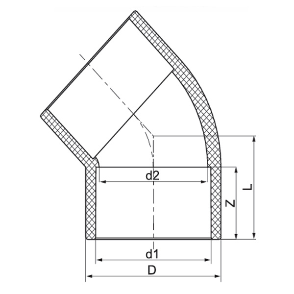 Coude 45° PVC-U DN15-600 1/2"-24" Norme ANSI
