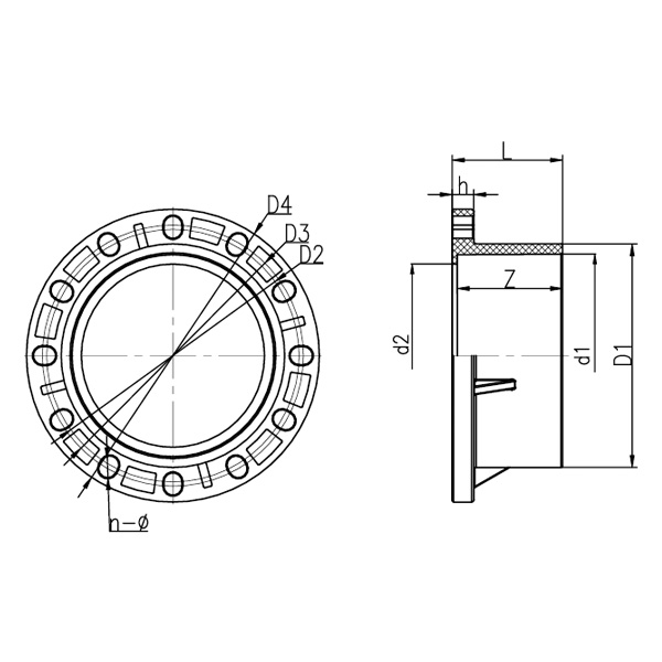 DN D1 D2 D3 D4 d1 d2 L h Z n-Ø Général