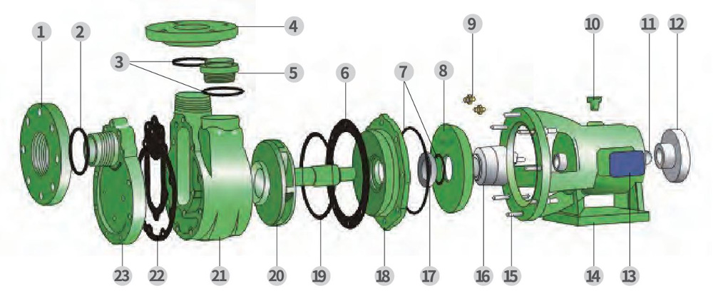 Structure : Pompe centrifuge à arbre
